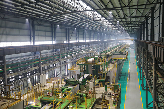 公司擁有1420酸洗冷軋聯(lián)合機(jī)組(PL-TCM)一套,機(jī)械由中國一重及中冶南方共同設(shè)計(jì)制造,電氣采用上海寶信軟件自動化控制系統(tǒng),機(jī)組設(shè)備配置合理,整體裝備達(dá)到國內(nèi)一流水平。機(jī)械設(shè)備涵蓋激光焊接設(shè)備、噴射紊流式酸洗設(shè)備、高精度雙塔式切邊設(shè)備(SMS)、五機(jī)架竄輥式UCM連軋機(jī)、新型回轉(zhuǎn)式雙卷筒卷取機(jī),軋機(jī)電氣采用秒流量控制系統(tǒng)。